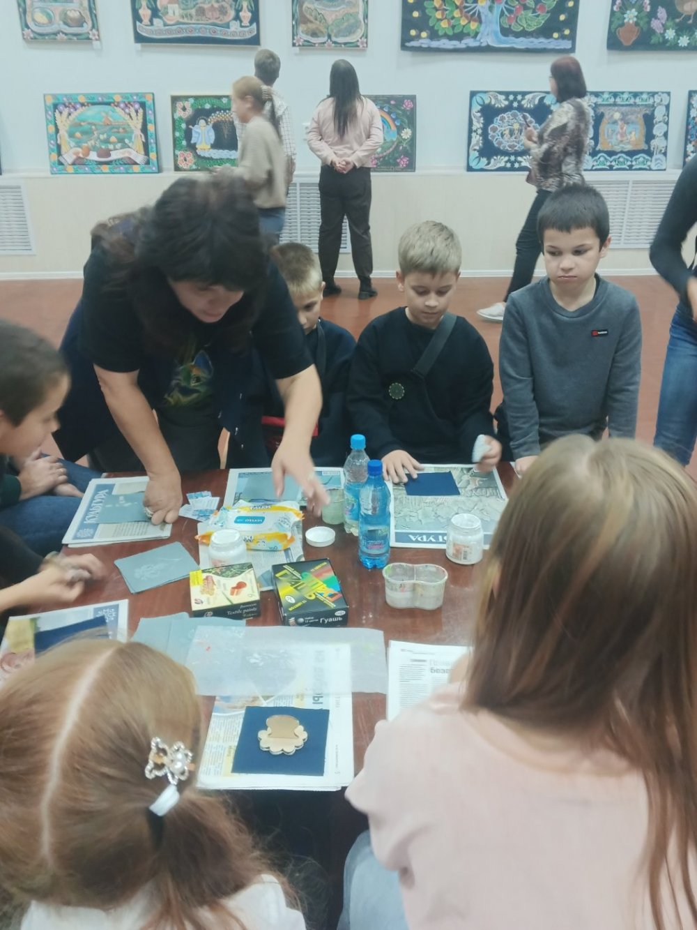 В выставочном зале состоялось открытие первсональной выставки Светланы Скавырко "Традиционное искусство рисования ковров". Маляванки – уникальный вид белорусского народного творчества – расписные настенные ковры. Рисованные ковры — культурное наследие белорусов, известны с конца 19 века, но наибольшее их распространение получили в 30-50-х годах 20 века, когда велась интенсивная реконструкция деревни. В этой области народной живописи сформировалась собственная поэтика идиллической картины мира с характерными для нее живописно-пластическими метафорами рая. Их дарили на свадьбу или на новоселье. Ковры носили сюжетно-тематический характер: катание на лодках, встречи или прощания влюбленных, архитектурные пейзажи в наивно-реалистическом стиле. Сюжеты были окаймлены орнаментально-растительными мотивами. Яркими мастерами создания этих ковров являются Елена Киш, художница-путешественница, создавала маляванки иногда за кусок хлеба. Другим ярким создателем маляванок является Язеп Дроздович, уроженец Глубокского района, белорусский Леонардо да Винчи, он иобладал многими знаниями и стремился эти знания отдать людям. В 30-е годы прошлого столетия был вынужден зарабатывать себе на жизнь, путешествуя по белорусским деревням, рисуя маляванки по заказу крестьян. Но он поставил себе цель – повысить художественный вкус крестьян, а также просвещать их, рисуя ковры. Он рассказывал обо всем, что знал. В 60-ых годах интерес к рисованным коврам пропал. Возрождение народного творчества началось в 80-ых годах 20 века. В 2014 году традиционное искусство рисованных ковров Витебского Поозерья было внесено в список историко-культурных ценностей нашей страны, при финансовой и консультативной поддержке ЮНЕСКО. Народный мастер Беларуси Светлана Сковырко знает секреты деревенского искусства и более 20 лет создает картины на холсте в уникальном жанре, являясь последователе Язепа Дроздовича. Она внесла огромный вклад в признание маляванок культурным наследием белорусов. Светлана Анатольевна уроженка Гомельской области. Профессиональное образование получила в Бобруйском художественном училище и Минском университете имени М. Танка. Трудовую деятельность начинала в Вилейке, затем переехала в Глубокое и сейчас является мастером народных художественных ремесел Глубокского дома ремесел. В 2009 году была принята в Белорусский союз мастеров народного творчества. Светлана Анатольевна является постоянной участницей выставок, конкурсов, праздников различного уровня, награждена грамотами и дипломами. Мастер провела ряд персональных выставок и мастер-классов по популяризации художественной росписи. В 2009 г. Светлана Анатольевна стала лауреатом праздника-конкурса мастеров народного рисования и современной росписи “Райский сад” в номинации “Роспись по холсту”. В 2014 г. получила Гран-при на празднике-конкурсе “Краски небес”, в рамках Международного фестиваля искусств “Славянский базар в Витебске”. Светлана Анатольевна рассказала о своих работах, особое внимание обратила на генеалогическое древо своей семьи. Провела мастер класс по созданию маляванак.